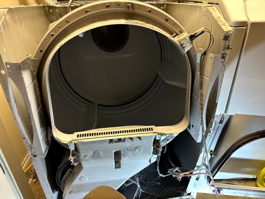 Dryers accumulate lint in hidden areas over time, even with regular filter cleaning. This dryer cleaning service in Raleigh (ZIP 27612) involved a full internal cleaning to restore airflow, improve efficiency, and reduce the risk of fire.