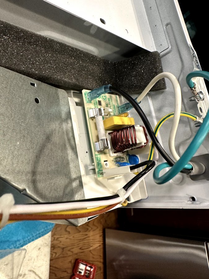 The noise filter (or line filter) protects your appliance from electrical interference and surges. When it fails, the microwave may appear completely dead — no lights, no response, and no internal sound.
